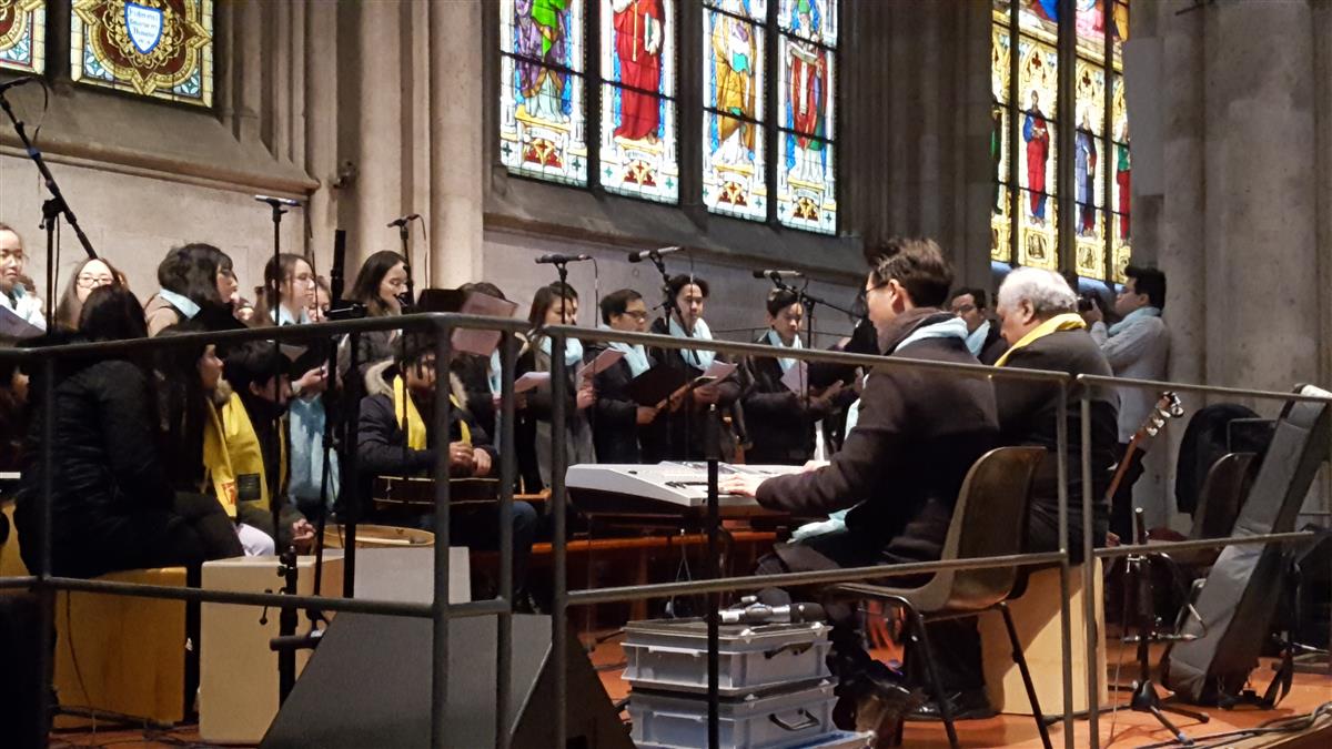 Für die Erwachsenen gab es zum Mitmachen um 11.00 Uhr „Bewegung – ein guter Start für Erwachsene“. Um 17.00 Uhr haben wir gemeinsam mit mehreren Chören und MusikerInnen die Internationale Jugendmesse in mehreren Sprachen in St. Gereon Köln-Merheim gefeiert, ähnlich wie wir sie am Gaudete-Sonntag im Kölner Dom veranstaltet haben. Anschließend wurden die Teilnehmer eingeladen zum Public Viewing. Bisher haben wir sehr viele positive Rückmeldungen bekommen. Die Teilnehmer sind sehr interessiert an einer Wiederholung dieser Veranstaltung. Danke an alle, die uns unterstützt haben: die DJK, der Diözesanrat der Katholiken und besonders die KJA Köln durch die Referentin Kirsten Schmitz. Ein besonderer Dank gilt den Chören und MusikerInnen aus Köln-Merheim und Köln-Brück, Frechen, Köln-Zentrum, Düsseldorf und Neuss.